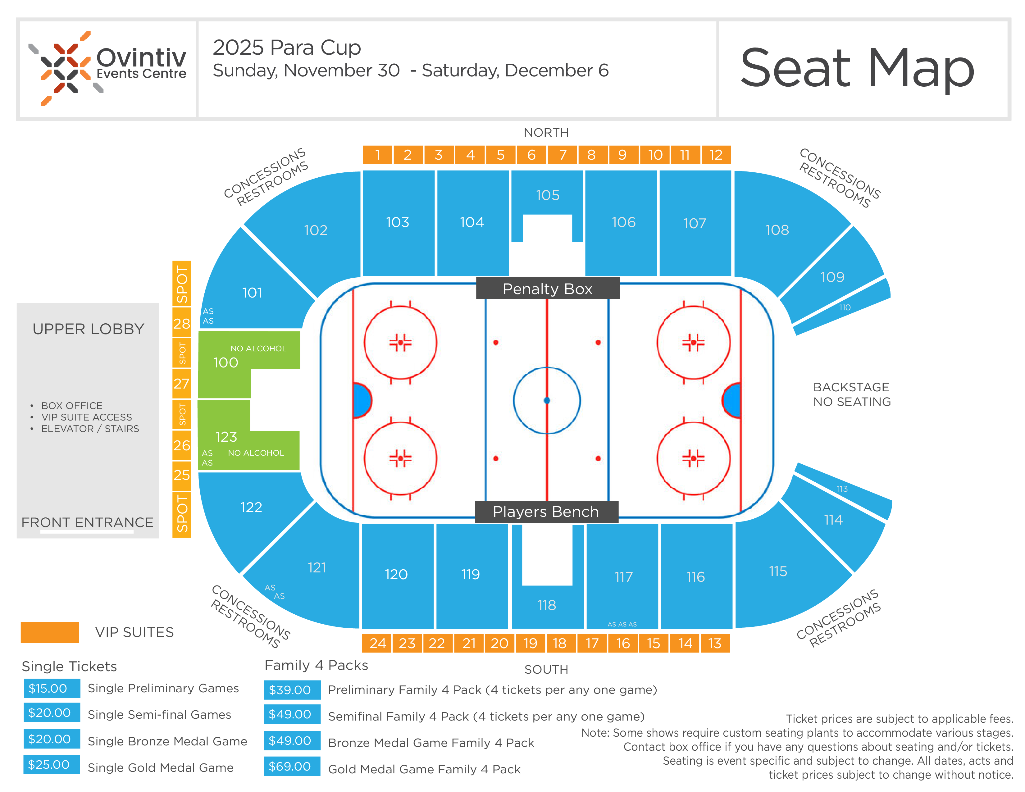 Ticket PricesSingle Preliminary Games $15.00 each, Single Semi Final Games $20.00 each, Single Bronze Medal Game $20.00 each, Single Gold Medal Game $25.00 each, Preliminary Family 4 Pack (4 tickets per any one game) $39.00, Semifinal Family 4 Pack (4 tickets per any one game) $49.00, Bronze Medal Game Family 4 Pack $49.00, Gold Medal Game Family 4 Pack $69.00